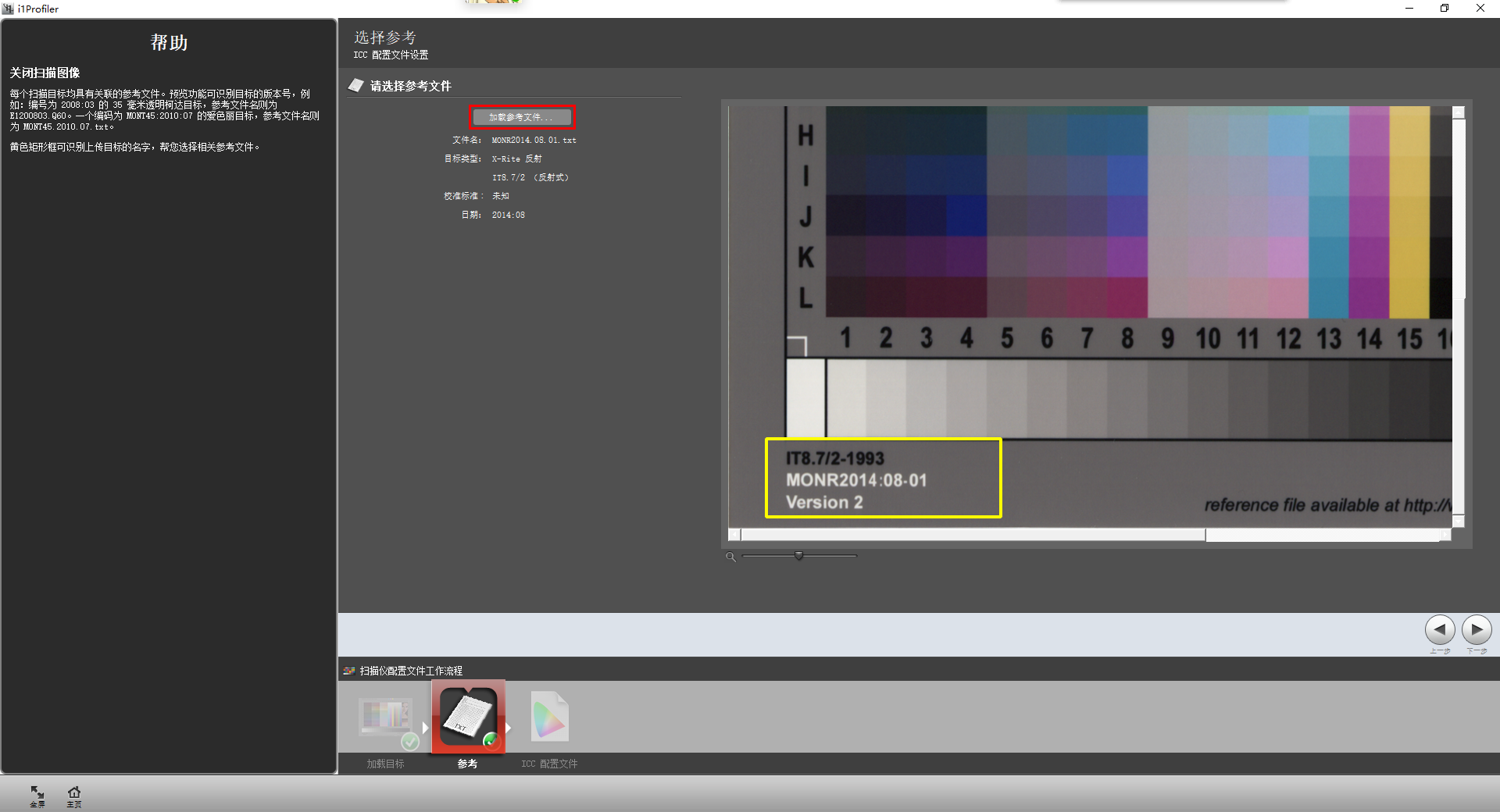 点击加载参考文件 按校色卡上的MONR号码选择对应的参考文件并点击下一步