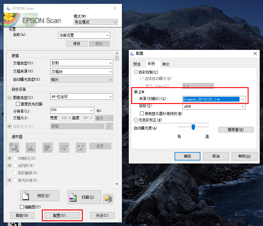 如果你用的是EPSON爱普生的扫描仪 ICC配置文件版本必须选择版本2